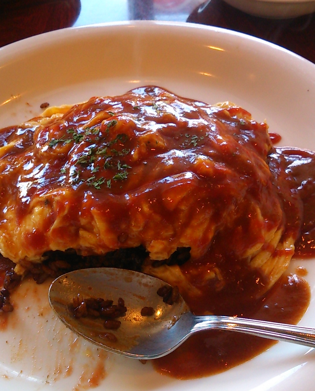 (写真はえびめしをオムライスにした『オムえび』です。私は断然オムえび派(笑))