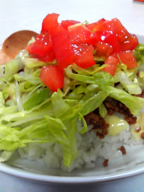 ただ、家にサルサソースはもちろんなく、さらにはケチャップもきれてたので、かなり和風な味付けのタコライスになりましたが…(笑)