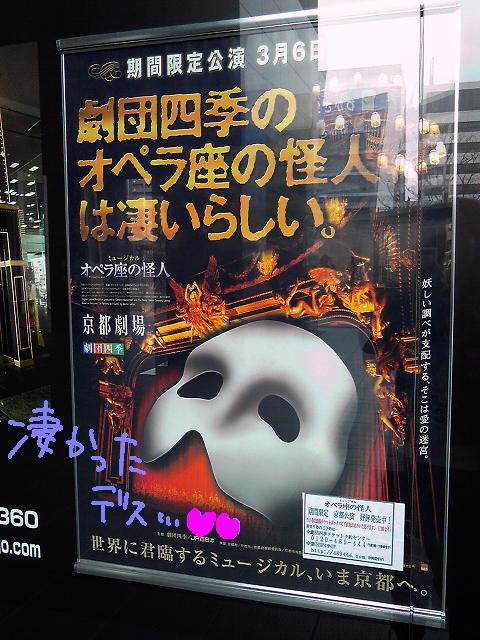 年末からチケットを取ってた『オペラ座の怪人』を見に、京都まで行ってきました!