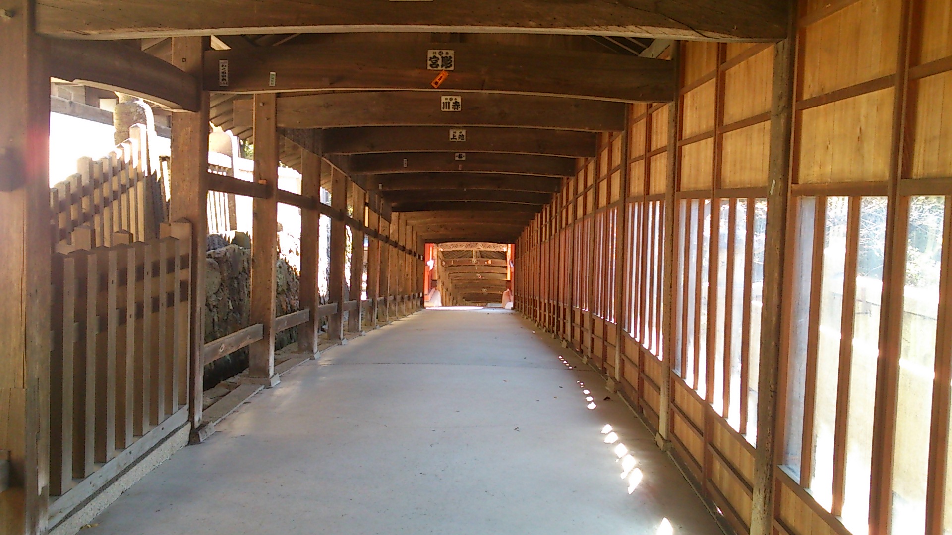 県内では有名な神社です。長い回廊は情緒たっぷり。運がいいと回廊脇の建物で弓道の試合(?)とかやってるのも見れますよ。