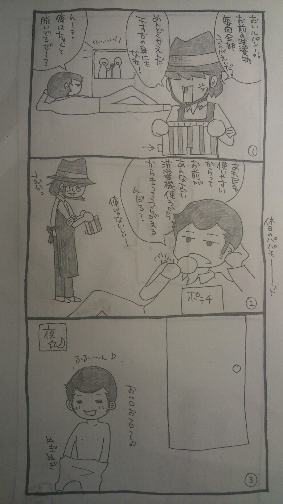 先日思いついたどーしょうもないネタを落書き漫画にしました(笑)